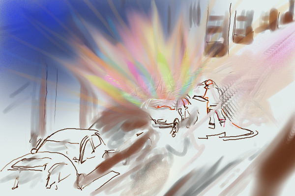 Die Wirkung dieser Pressefotos wurde im unwillkürlichen Abbilden stilisiert, parodiert, persifliert und kritisch überhöht: Mit allen launischen Temperamenten wurde das Foto bespielt und wurde zum Bild vom Bild. Modischen Bildsprachen des Life style sind im spontanen Wechsel der aktuellen Themen, die gerade jeder kennt und diskutiert. Die digitale Darstellungstechnik funktioniert dabei ähnlich einem Synthesizer, der jeden Rückgriff auf Ausdruckformen der gesellschaftlichen Mentalitäten, aber auch auf Erscheinungen der Kunstgeschichte möglich macht.